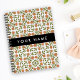 Agenda Flores Laranja, Padrão Floral, Boho, Seu Nome
