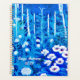Planeador em semiabstrato de uma floresta de fantasia com flores, folhagem, árvores e aves, em tons de azul e branco de cobalto - com nome e ano editáveis