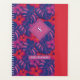 Um design com flores de verão divertidas e brilhantemente coloridas e folhas de palmeiras.