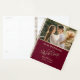 Livro personalizado de núpcias elegante, moderno e simples, de burgundy vermelha, com fotografia, com casais únicos desenhados à mão e um roteiro de caligrafia de tendências.