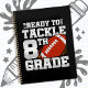 Esta design de tema de futebol divertido é perfeita para um professor do oitavo ano que ama futebol ou estudante pronto para enfrentar a 8ª série no primeiro dia de volta à escola e durante todo o ano! Apresenta 'Pronto para lidar com o 8º ano' de volta à oitava frase da escola com gráfico de futebol. Excelente para um professor da 8ª série ou oitava série que adora assistir ou jogar futebol!