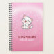 Gatinho branco giro sobre fundo cor-de-rosa com estrelas brancas