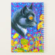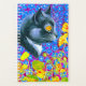 Planner com a pintura de animais de Louis Wain Cat no Mar de Flores (1860-1939). Um gato preto e branco com olhos ouros cheira a flores amarelas. No fundo roxo estão flores azuis. Um presente maravilhoso para amantes de gatos e arte inglesa.