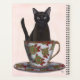 Gato Negro em Teacup por FabFunky. Possui um gato sentado em uma bela equipe floral. | 191544D