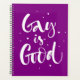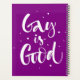 Este trabalho de arte apresenta texto de script com a frase "Gay é bom".