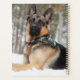 german shepherd posando na neve vestindo uma bandana colorida camoflaug.