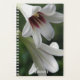 Este planejador mensal/semanal mantém todas as suas atividades e agendas futuras organizadas num único local útil e apresenta uma imagem fotográfica das flores brancas do Giant Himalayan Lily, em forma de trompete, com centros avermelhados roxos. Um design floral adorável! Selecione o estilo do planejador e a cor do fio.