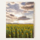 Esta foto mostra um campo de girassóis com um pôr do sol.