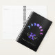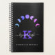 Este belo, único, design de gema apresenta fases do ciclo lunar, incluindo luas em crescente, meia e cheio, em palha pastel, azul, roxo e magenta, dispostos em um arco que chama a atenção contra um fundo de cinzas de carvão clássico, folhas negras de metal. Abaixo das fases da lua há um monograma de lavanda personalizável e um nome personalizado em elegante e tendenciosa tipografia branca para um olhar legal com letras à mão. Abaixo do monograma e nome está uma linha adicional de texto em uma fonte sans serif popular, que pode ser um nome de cheio ou outro texto, ou pode ser deixado vazio se desejar. Você pode personalizar este item alterando o monograma, o nome e o texto no modelo do produto. O design foi otimizado para o pequeno planejador. O planejador de tamanho maior está disponível na mesma coleção.
