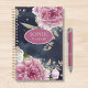Glitter Watercolor Floral Planner (Planilha Floral Rosa-Cor-de-Água) Personalizado apresenta um padrão floral bonito, cor-de-rosa e azul, acentuado com brilho dourado com o seu nome personalizado e texto no centro. Personalize editando o texto na caixa de texto fornecida. Elaborado por ©Evco Studio www.zazzle.com/store/evcostudio