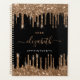 Agenda Glitter preto dourado goteja nome do monograma 202