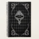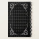 Design de estilo Steampunk com elementos de espiral vitorianos ornamentados com um sofisticado fundo de harlequina preto e cinza. Com um rótulo de vintage de ornamentado que você pode personalizar, com a data ou o seu nome.