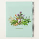 Herb border, custom planner. Blueish green color with text in the center for a title, with year. A split border of herbs decorates the top and bottom on the front. More herbs, with a little pot, decorate the back. Perfect for the herb gardener, naturalist, holistic healer, or botanist. Size 8.5 x 11 inches, or choose the smaller size. The design will change, but still works.