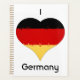 Esta design com as palavras I e uma bandeira alemã em forma de coração e a palavra Alemanha indica "Eu amo a Alemanha", "I Heart Germany". Este seria um presente excelente para um Fã Alemão do Esporte, ou talvez um presente Dia de os pais para alguém com ascendência Alemã.