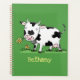 Nossa linda vaca leiteira negra e branca fresiana está num campo de grama verde comendo margaridas amarelas. Muito diversão bovina!