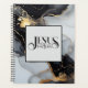 This notebook planner is shown with a Jesus is the way print and is shown in an ink abstract print in a multi colors black, gold and grey.