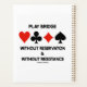 Se você jogar bridge — o jogo de ponte ou ponte duplicada — completamente, você vai gostar dessa ponte tortuosa dizendo que o planejador apresenta o seguinte conselho da ponte: "Tocar Ponte - Sem Reserva e Sem Resistência". Vem com os quatro trajes de cartão. Faça com que todos façam uma dupla jogada em como jogar o jogo da ponte com uma dose de humor de ponte na bochecha com este planejador!