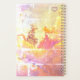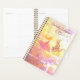 Nuvens coloridas rodeiam este casal bonito no céu; este planejador de anime-day apresenta uma estética kawaii de uma garota de gato e um garoto de gato (princesa e cavaleiro) se encontrando em uma nuvem