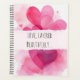 A cascade of overlapping watercolor hearts in soft pinks and reds creates a dreamy, romantic atmosphere.