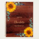 Madeira marrom russa como fundo decorado com girassóis de cor aquosa, eucalipto verde. Personalize e adicione um nome e título do ano 2022 (ou qualquer ano). O nome é escrito com um grande estilo escrito à mão moderno. Perfeito para a escola, o trabalho ou a organização da sua vida pessoal/familiar.