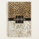 Manchas-leopardo castanhas e mármore de cor rica no fundo. O centro é deixado para personalização / personalização com um apelido ou sobrenome e monograma inicial. Elegante e na moda com um padrão de pele de gato selvagem que parece antigo e antigo.