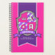 Amanda, que significa cavaleiros, escudo, design em um planejador roxo rosa. Galiant royal crown knights style crest shield monograma letter A art name planejer perfeito para crianças e adolescentes em tons de roxo rosa, cinza e branco. Personalize com seu próprio nome começando com A e o significado do nome ou uma mensagem ou assunto para um toque personalizado, atualmente lê Amanda Worthy. Romântico, gentil e bonito. Desenho de crista real único, com cabeça, coroa, estrela e monograma inicial de um unicórnio, carta, arte gráfica e design, por www.mylittleeden.com no zazzle.
