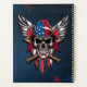 Liberdade selvagem, crânio americano com morcegos de beisebol. O crânio exude uma expressão sombria, marcada por dentes proeminentes e soquetes a jato-preto. Atrás do crânio, dois morcegos de baseball com alças castanhas resistentes se cruzam, simbolizando força e determinação. A combinação do crânio, morcegos de beisebol e bandeira cria uma narrativa visual impressionante da liberdade, rebelião e orgulho americano.