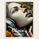 Agenda Linda mulher com Fones de ouvido em girassóis