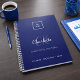 Um clássico fundo azul marinho. Personalize e adicione o logotipo da sua empresa, as iniciais do monograma, o nome e um título/ano. Letras brancas e azuis. O logotipo da sua empresa na frente e atrás.