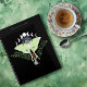 Uma grande mariposa verde com fase lua num pano de fundo preto