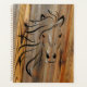 Placa de madeira colorida numa diagonal sobreposta com um contorno da cabeça do cavalo.