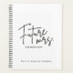 O caderno de planejadores de casamento personalizado com a design de "futura Sra." moderna.