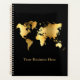 Um mapa gráfico mundial design pelo artista/designer Charmaine Paulson em um planejador. O texto usado aqui é Garamond Bold e a cor D0AA6C.