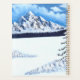 Um planejador com uma bela cena de inverno, incluindo montanhas cobertas de neve, evergreens, e cabana rústica. A imagem e o texto podem ser personalizados. Arte original por W.B.