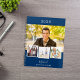 Crie sua própria colagem de fotos exclusiva. Use quatro, quatro da sua foto favorita. Personalizar e um ano, nome e texto. Um fundo azul marinho, texto branco.