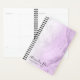 Planeador artístico moderno e na moda com textura falsa de mármore roxo, textura de mármore branco e letra elegante de caligrafia.