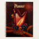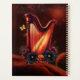 Melodia cósmica, a magia da harpa. A harpa irradia calor e luxo, suas cordas ouros e sua estrutura contrastando harmoniosamente com as flores pretas e laranja que a adoram. Essas flores são vibrantes e ricamente detalhadas, dando ao instrumento uma beleza natural e um toque de magia. O plano de fundo transporta o visualizador para um escape de espaço mesmerizador. Consiste em nuvens nebulosas profundas, azuis e roxas, intercaladas com estrelas cintilantes e planetas cintilantes de vários tamanhos e cores.