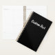 Este planejador preto tem texto de exibição em um script branco elegante. O texto pode ser editado ou apagado.