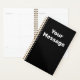 Você pode criar sua própria mensagem em texto branco neste planejador preto.