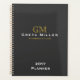 Agenda Monograma Dourado Clássico Simples de Carvão Elega