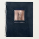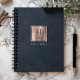 Este elegante planejador apresenta uma imagem de fundo digital na imitação da textura de couro azul marinho. Personalize-o com o seu monograma inicial em letra decorativa azul marinho e o seu nome em letra marinho azul em placa impressa num quadrado de metal esfregado em ouro rosa, juntamente com o ano ou outro texto da sua escolha em rosa sobre fundo azul marinho.