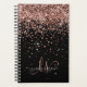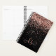 Planador de Monograma Elegante Glitter Dourado Glitter Elegante de Rosa Glam Personalize facilmente este design de planejador de chic de tendência apresentando elegante brilho brilhante rosa de ouro sobre fundo preto. O design apresenta seu monograma manuscrito com toalhetes bonito e nome.