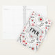 O planejador bonito apresenta o padrão floral moderno de cinza / vermelho / branco com texto oval personalizável central para personalizar com monograma ou nome.