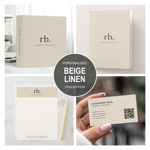 Monograma Simples e Elegante de Textura de Creme de Linen bege