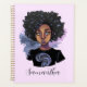 Esta elegante e moderna design apresenta uma linda garota afro-americana em uma camisa preta casual. Você pode personalizá-lo com seu nome escrito em caligrafia elegante. É também um presente perfeito para mulheres afro-americanas fortes e independentes.