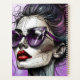 Linda senhora com óculos de sol roxos e batom vermelho, Arte Ai com linhas degenerativas abstrato com pão bagunçado.