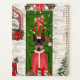 O Natal do Cachorro Miniatura, sentado do lado de fora da casa decorada com coroa de Natal, a árvore de Natal é uma ideia perfeita de presente de Natal para amantes de cachorros.