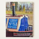 Um design de arte retrô de um barco estreito amarrado.