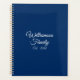 Família de scripts personalizados, azuis e brancos, Elegante ou nome comercial, e Planejador personalizado de agenda personalizado de data estabelecida. Texto branco personalizado sobre fundo de cor simples azul-marinho. Este planejador trabalha como excelente como uma agenda familiar, empresarial e profissional.