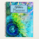 Um pano de fundo brilhante verde-azul-neon e abstrato amarelo com um girassol esboçado onde acima está um quadrado amarelo onde você pode personalizar seu planejador. Dazzling